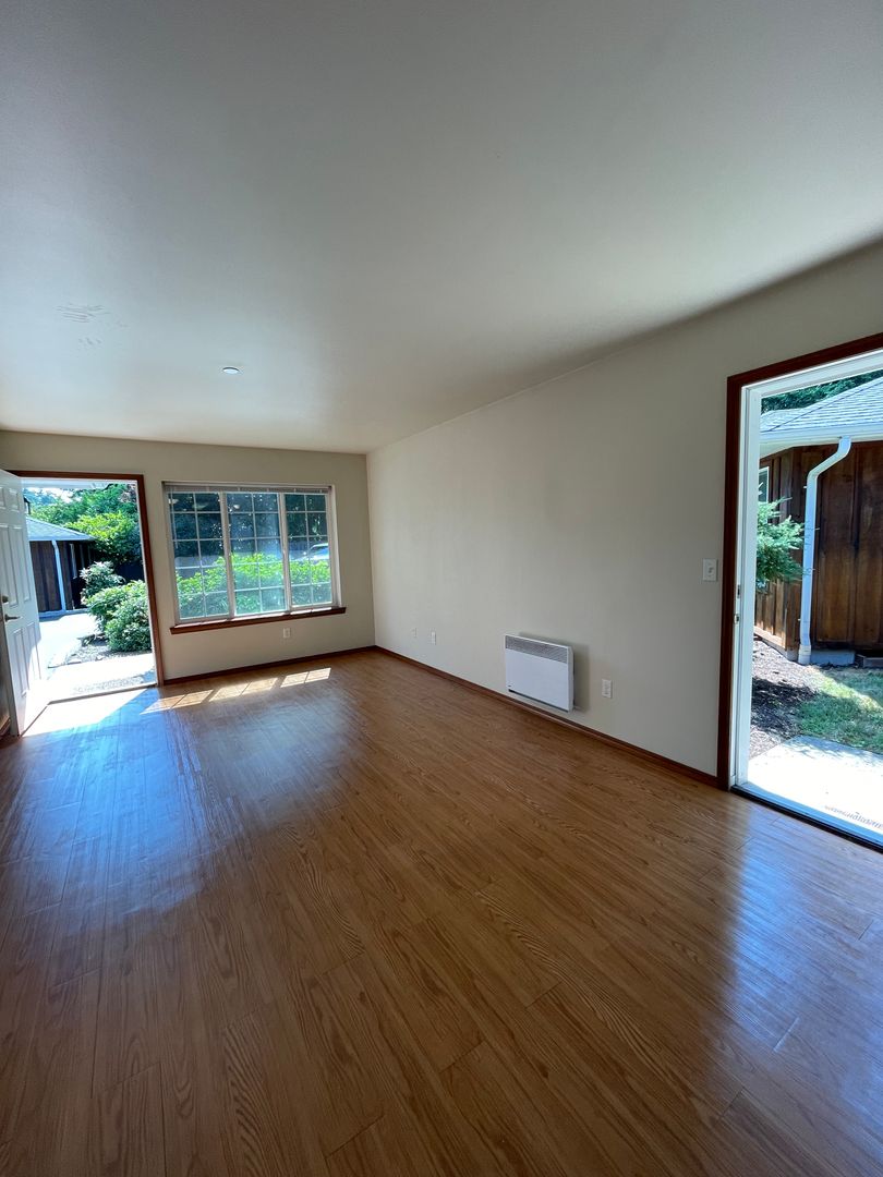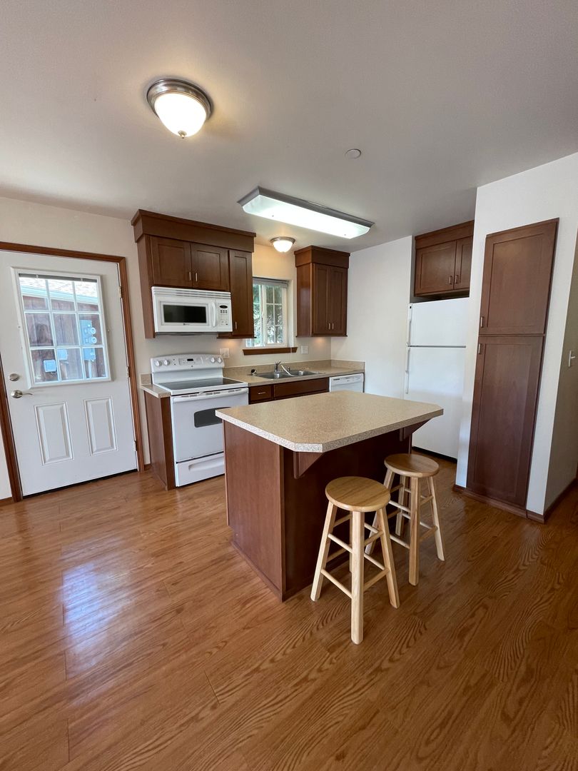 Experience elevated living in this 2-bedroom, 1-bathroom duplex located in the scenic Oak Harbor. This property offers a unique blend of comfort and functionality, featuring hardwood floors that add a touch of elegance to the space. The attached single car garage, approx. 750 square feet that provides convenience and security for your vehicle or additional storage. The duplex is also equipped with washer/dryer hookups in the garage, making laundry day a breeze. One of the standout features of this property is the built-in computer desk, perfect for those who work from home or need a dedicated space for studying. Kitchen has microwave, range, dishwasher, and custom movable island with bar stools. Highly efficient radiant wall heaters! Water, sewer, and garbage included with rent. This duplex is more than just a place to live, it's a lifestyle upgrade. Elevate your living experience today!